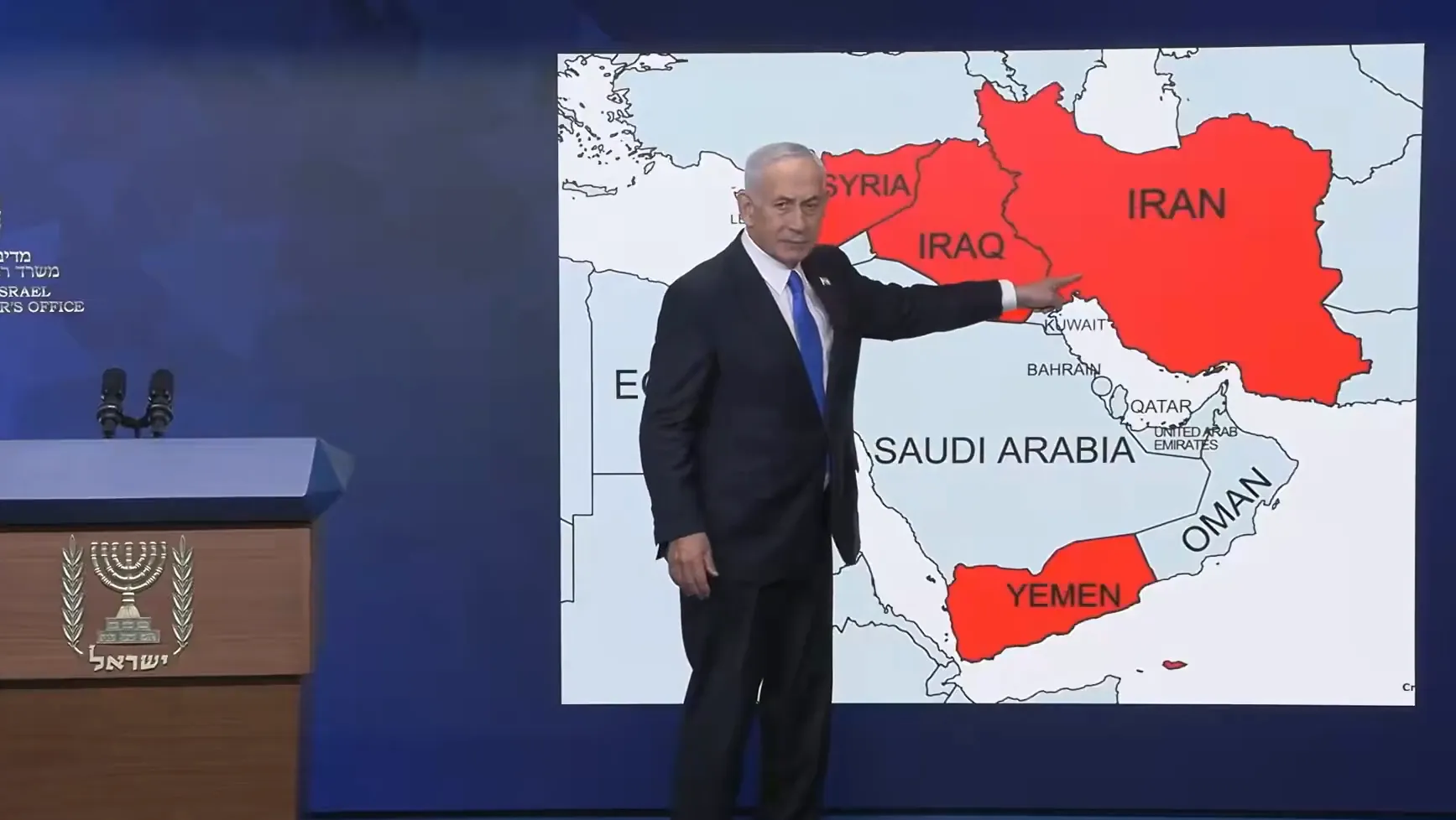 नेतन्याहू के इस वीडियो में सबसे ज्यादा ध्यान खींचा उनके हाथ में मौजूद नक्शे ने। इस नक्शे में ईरान के साथ-साथ सीरिया, इराक और यमन को लाल रंग में दिखाया गया है। नेतन्याहू ने संकेत दिया कि ये वो इलाके हैं जहाँ ईरान का सीधा प्रभाव है और जो इज़राइल की सुरक्षा के लिए खतरा बने हुए हैं।